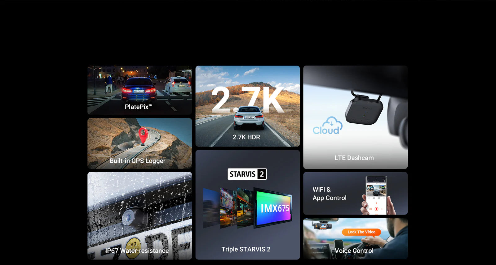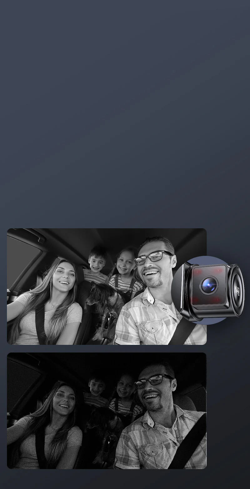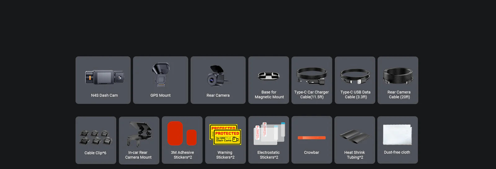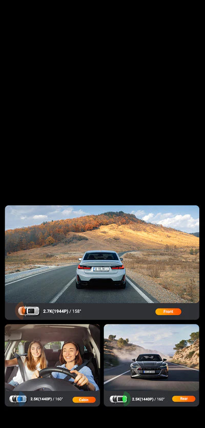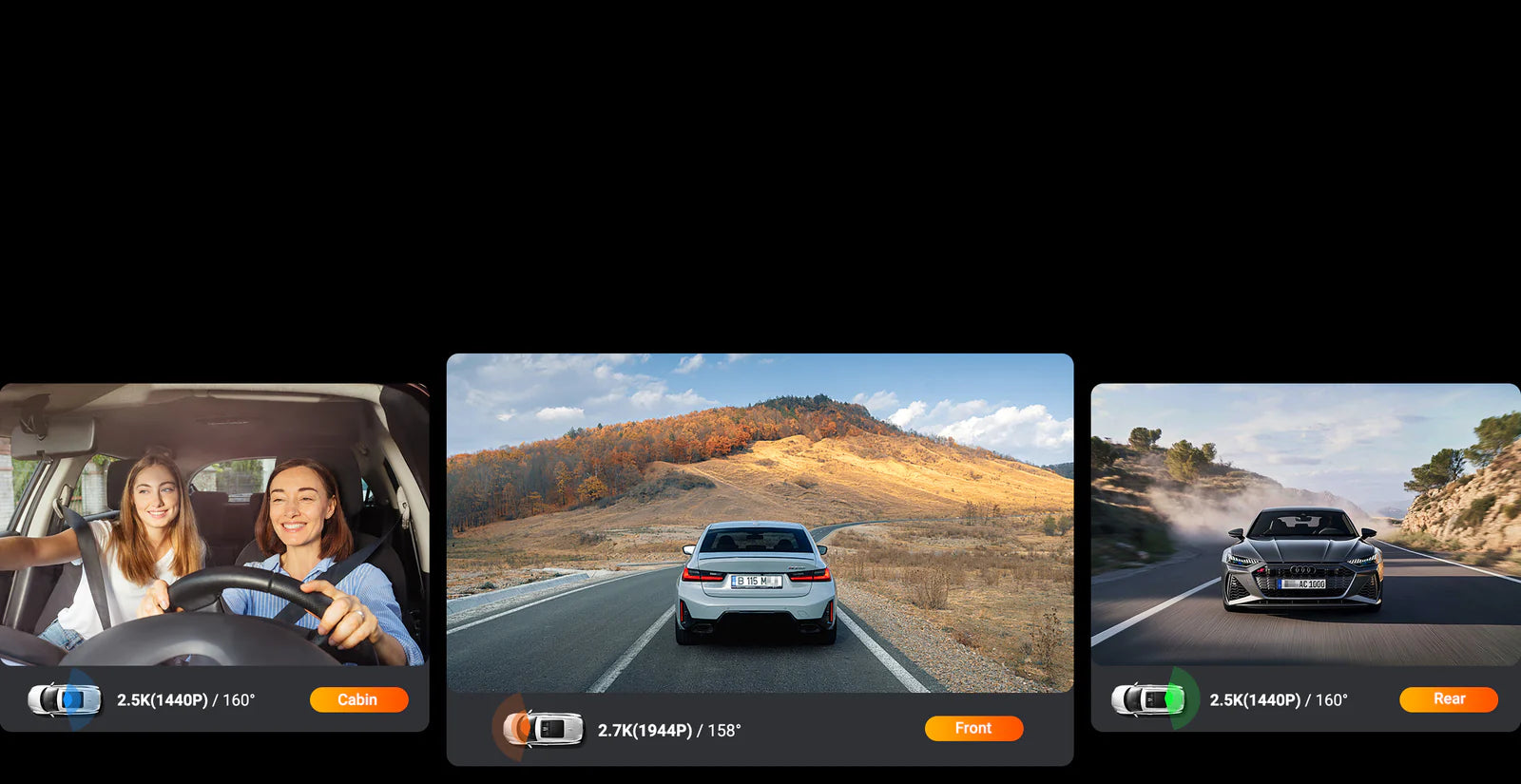 The N4S dash cam offers 3-channel recording in 2.7K front and 2.5K cabin/rear resolutions. Featuring Sony STARVIS 2 sensors and 158° + 160° + 160° wide-angle lenses, it ensures 360° clear coverage, capturing every detail without blind spots.