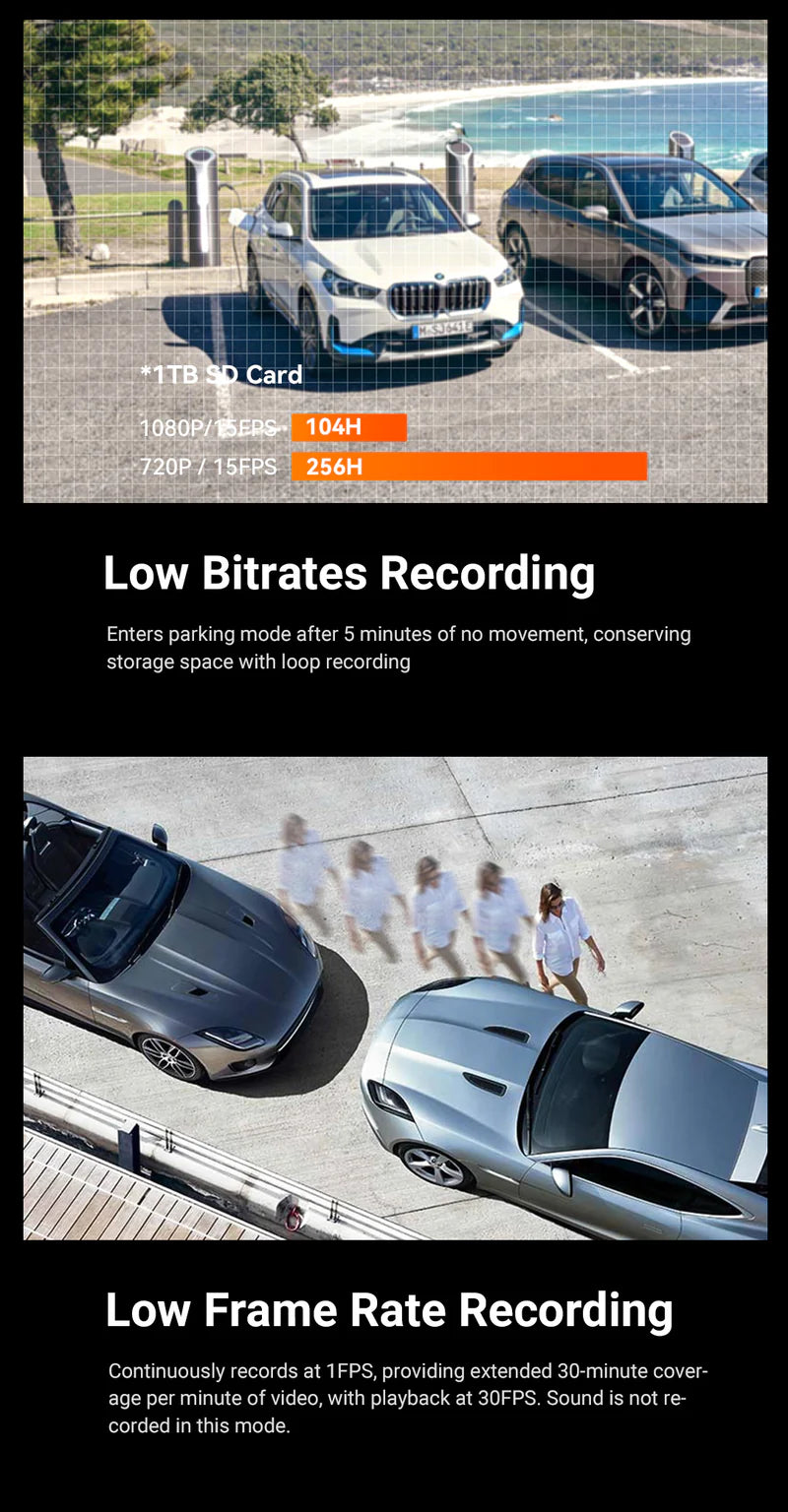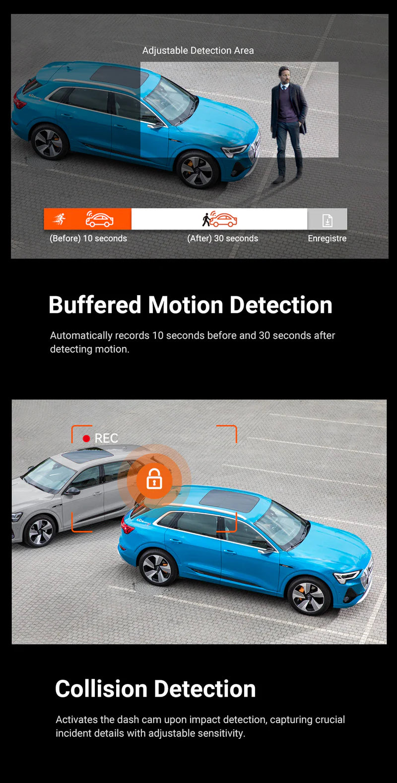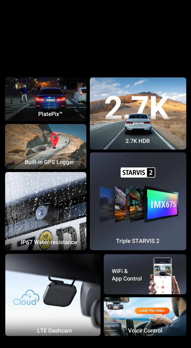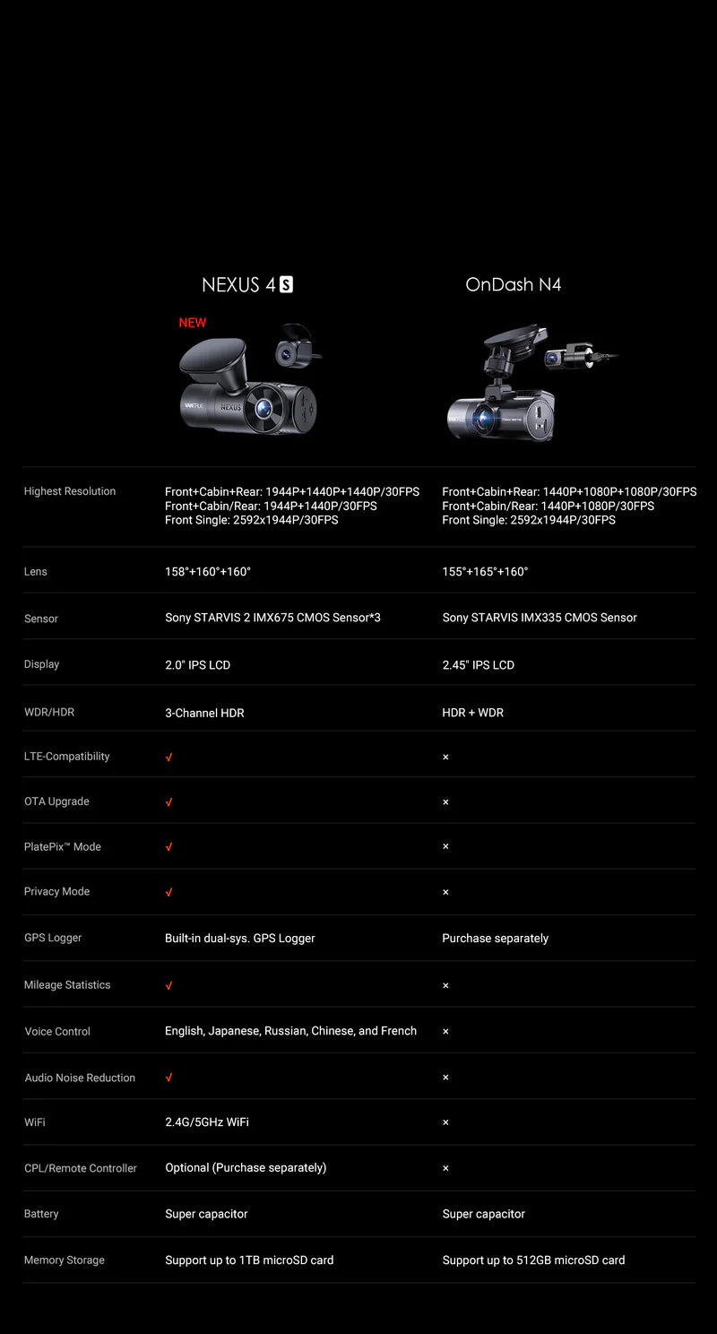 The N4S dash cam offers 3-channel recording in 2.7K front and 2.5K cabin/rear resolutions. Featuring Sony STARVIS 2 sensors and 158° + 160° + 160° wide-angle lenses, it ensures 360° clear coverage, capturing every detail without blind spots.