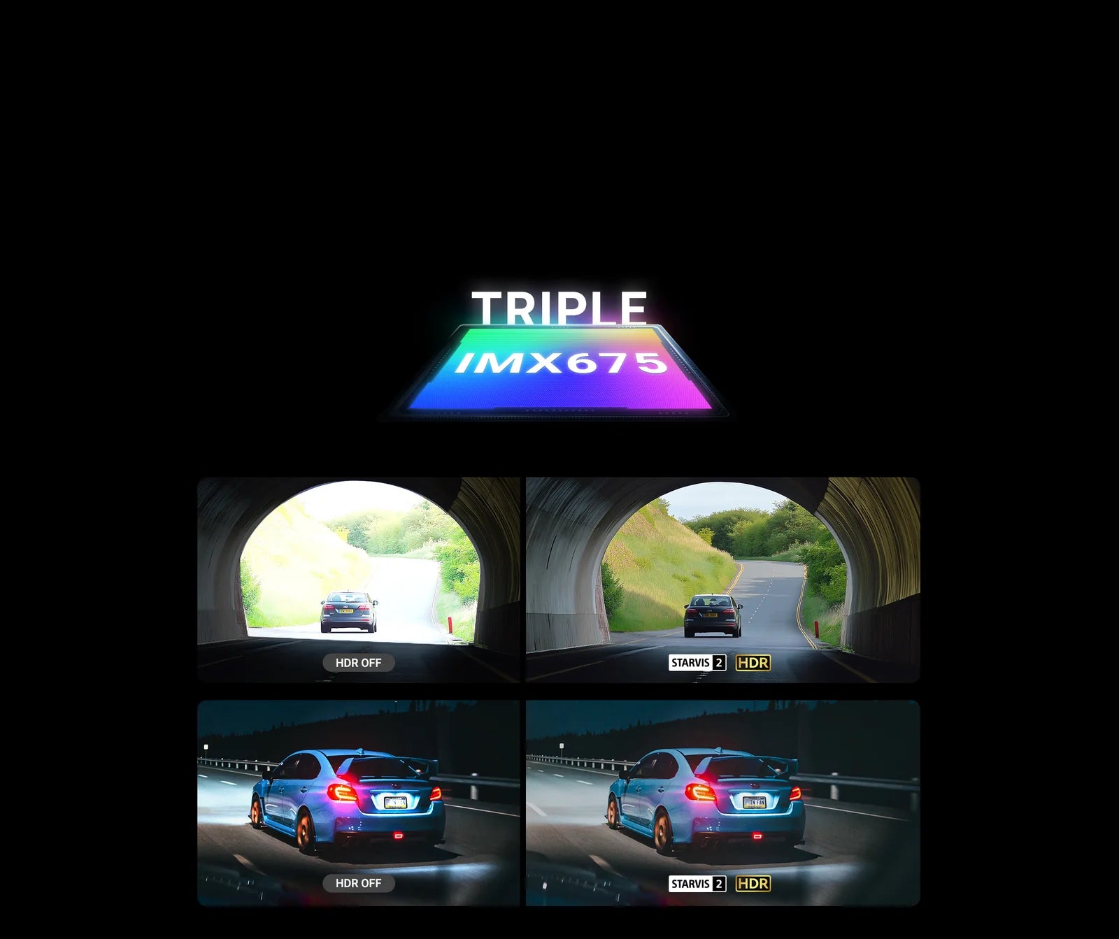 - Triple STARVIS 2 IMX675 CMOS Sensor