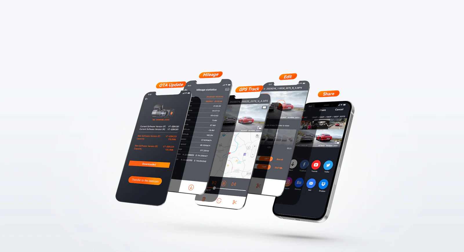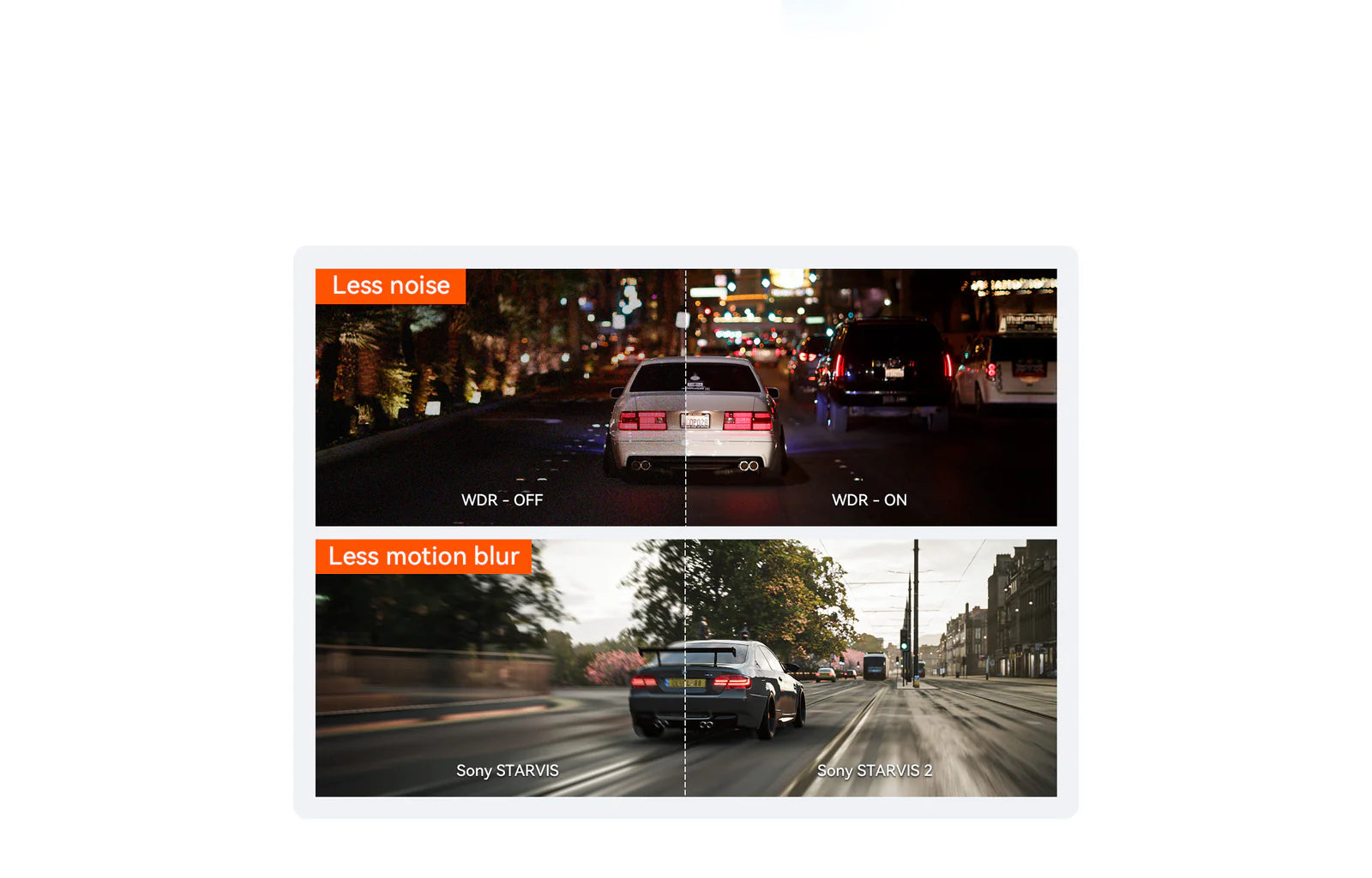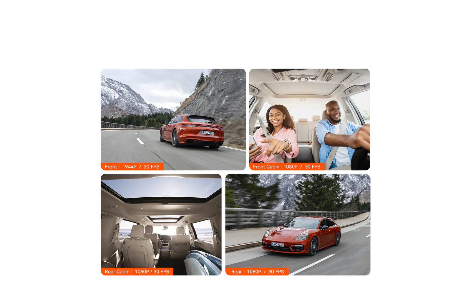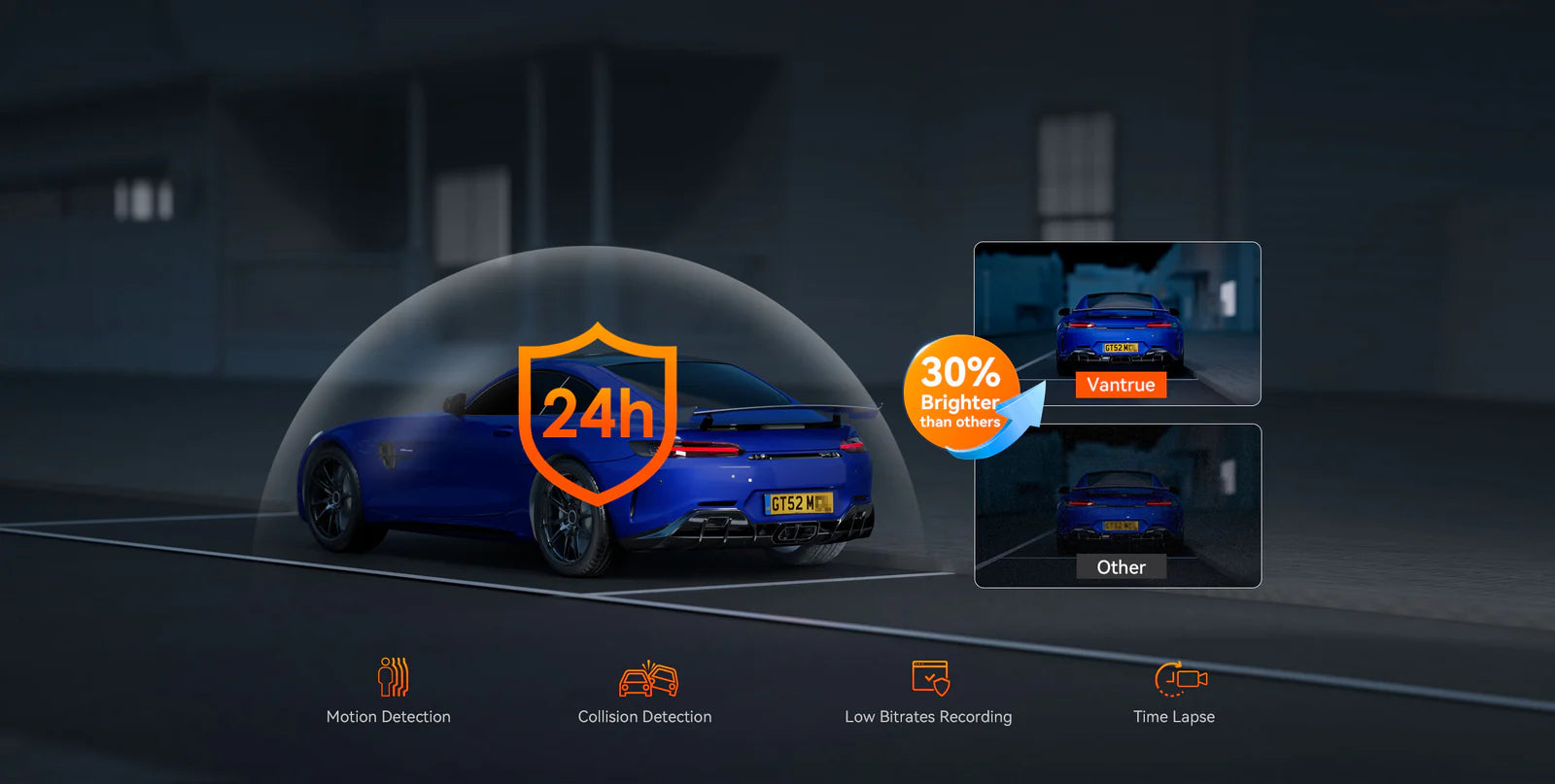 In the 10s pre-recording buffered Motion Detection mode, when any motion around the car is detected, all 4 cameras will automatically start recording, saving video 10 seconds before and 30 seconds after the event. Customizing the Motion Detection Area lets you create your own Motion Zones for the front and rear cameras, so your device can prioritize the areas that matter most to you.